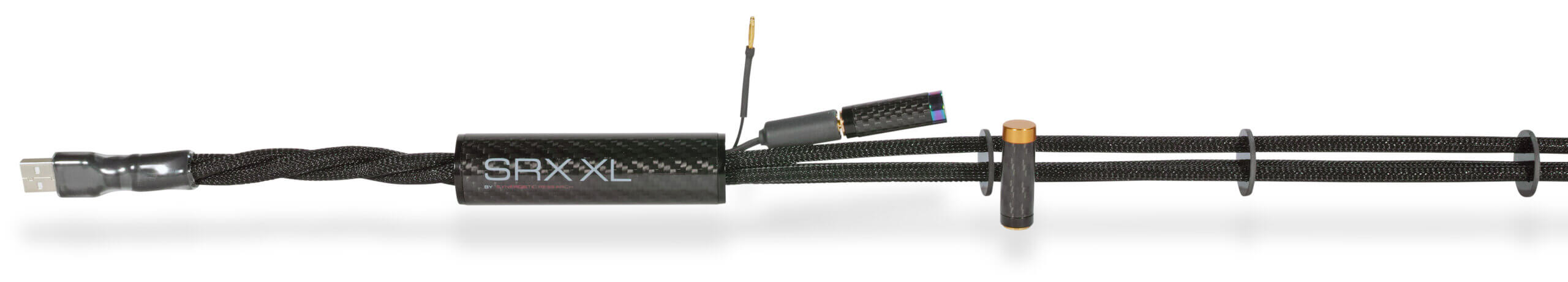 - SRX XL Long Duration Quantum Tunneling: After the cable is completely assembled all connections and cabling are treated with 1,000,000 volts of electricity at specific frequencies and pulse modulations, creating a canal in the conductor material and contact points at the molecular level that allows electrons to flow more freely. This allows the maximum amount of low level information through the conductors and provides for the highest amount of realism in your music